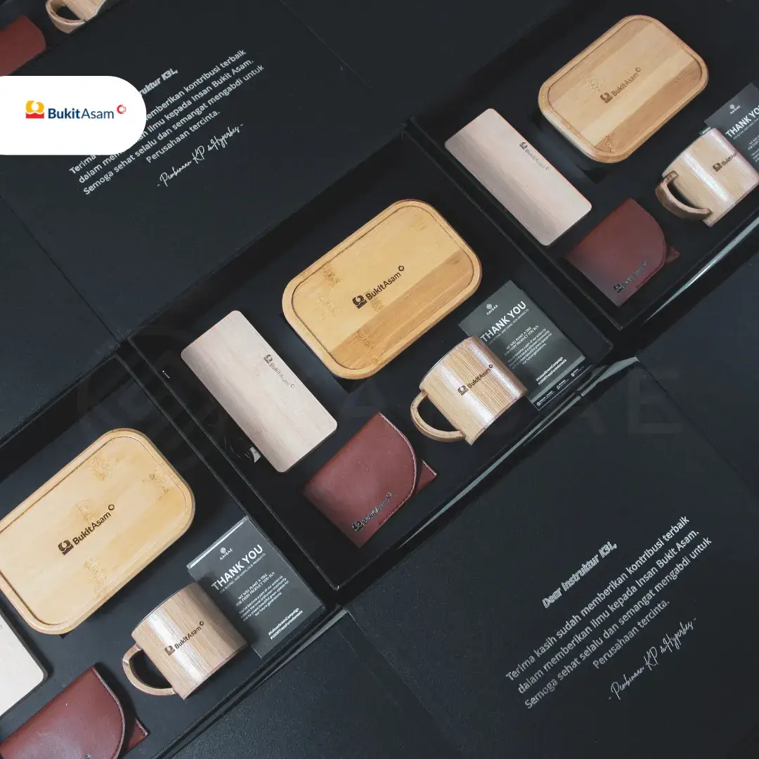 Selain produk bambu dan kayu yang ramah lingkungan, kami juga menyediakan berbagai souvenir unik dan merchandise custom untuk hadiah perusahaan, event, dan lainnya. Logo perusahaan Anda pun bisa ditambahkan untuk sentuhan personal.